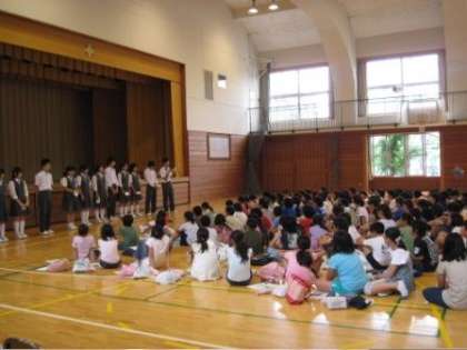 その後、体育館で生徒会役員や各部活動の部長が、学校生活について説明をしました。