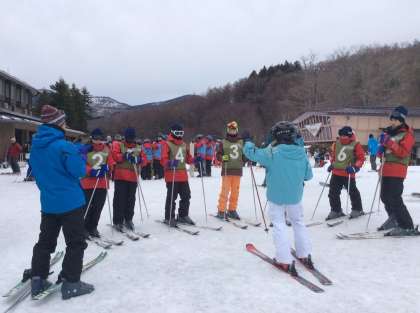 ワクワクのスキー教室。最初はウォーミングアップ。