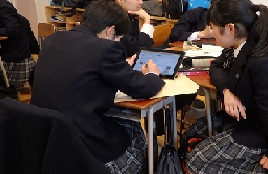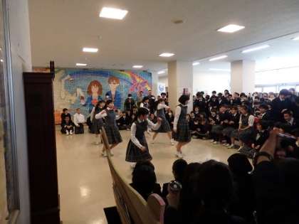 1月18日(木)昼休み。12月に行うはずだったダンス部と吹奏楽部の発表が行われました。インフルエンザ流行により今日まで延期になりました。だから演奏や演技した曲がクリスマスソングでもご愛敬。温かい拍手をもらって盛り上がりました。その後はタブレットを使用して、校外学習調べ。食べ物を調べてる班が圧倒的でした。おいしいものは見つかったかな?