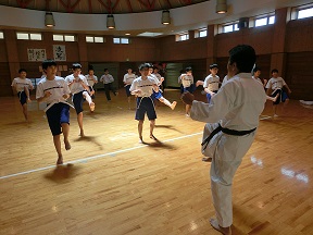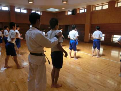 今年の体育祭で初めて披露する男子の空手集団演武。その練習が体育の授業で本格的に始まりました。生徒は型を覚えるのに苦戦しながらも、一生懸命授業に取り組んでいました。