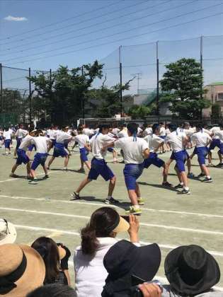 今回から男子は空手の集団演武を行いました。勇ましく、ビシッと決めて、東の新しい歴史を築いていきます。