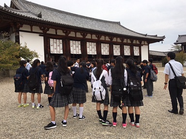 奈良にやってきました。最初の見学地は法隆寺。世界最古の木造建築で世界遺産。ガイドさんの説明を聞いていると、古代のロマンがよみがえってきます。聖徳太子の気分になれたかな。