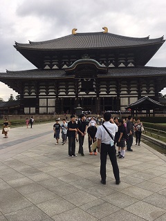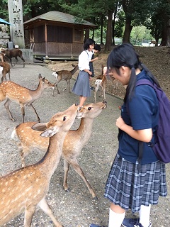 東大寺で、大仏の大きさに圧倒されました。かわいい鹿ともたわむれています。