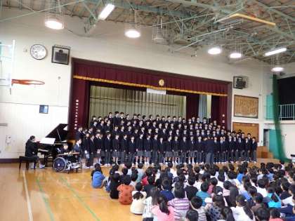 今日2日、1年生は等々力小で合唱披露を行いました。「翼をください」「Let's search for tomorrow」を歌いました。小学校の先生方に成長した姿を見せることができて良かったですね。