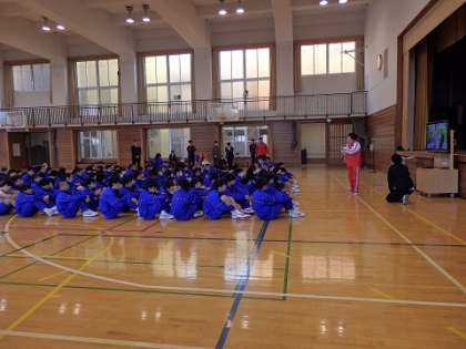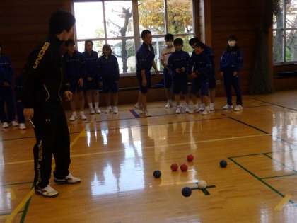 5時間目は1年生と3年生。6時間目は2年生が体験をしました。ついつい力が入りすぎて、狙ったところにいかないと、「あー」という悲鳴に似た声があがり、ジャックボールに近づくと大きな歓声があがりました。とても素敵な時間を過ごすことができ、大満足。ボッチャの説明もしっかり受けて、明日の2020東京大会まで1000日を迎えます。