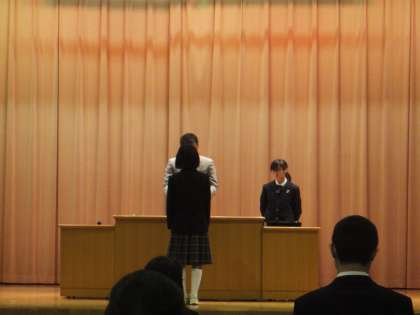 2月5日(月)朝礼がありました。体育委員が平昌オリンピック壮行会の報告会を行いました。スライドを用いて、当日の様子を伝えてくれました。その他にも区展の表彰、キルトの表彰、5日間本校で現場実習を行う先生の紹介がありました。