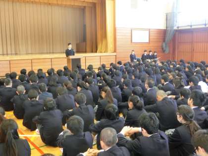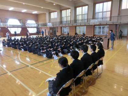 3月5日(月)1時間目に、受験を終えた3年生の代表5名が1,2年生に向けて入試報告を行いました。私立及び都立の推薦、一般それぞれの合格者の実体験を踏まえた話に、1,2年生はとても興味をもって聞き入っていました。こうして、3年生の経験が1,2年生に引き継がれていきます。