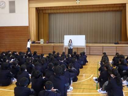4月11日にいじめ防止プログラム第1回が行われました。1年生の学年スローガンは「あいさつをしよう いじめをしない うそをつかない 笑顔を大切にしよう 思いやりの心をもとう」。スローガンどおりの学年になるよう、いじめ防止プログラムでたくさんのことを学んでくださいね。