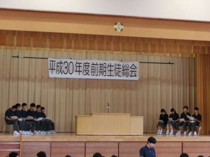 5月14日(月)に、前期生徒総会が行われました。生徒会役員、各学級委員長、専門委員長から前期活動方針の説明と議案書討議で出た質問や提案に対する回答がありました。全校生徒の前で発表する姿はとても立派でした。これからも生徒全員でよりよい東深沢中学校を築いていきましょう。