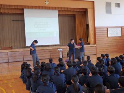 今日14日(土)、LINE株式会社から講師をお招きして、「インターネットを使う時に気を付けること、考えること」と題してセーフティ教室が開催されました。1年生と2、3年生はそれぞれ、入門編、発展編と内容が異なります。便利ではありますが、使用方法を気を付けないとトラブルに巻き込まれるおそれもあり、講演を聴いて改めて、使い方を考えました。