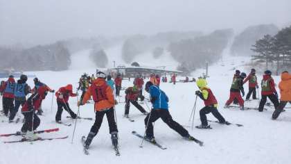 風雪の中、最後の講習スタートです。自然の厳しさも感じながら、楽しく滑ります。