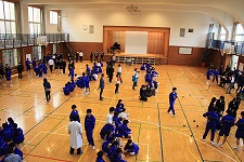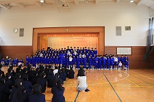 また、食堂や教室で、3年生と一緒に昼食を摂りさらに交流を深めました。最後に合唱曲「群青」を披露し、会場を感動で包み込みました。