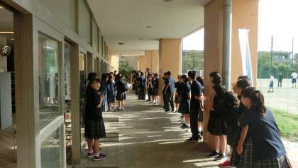 朝8時から8時15分の間、登校する全校生徒に直接声をかけていきます。