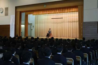 本日、道徳授業地区公開講座・PTA家庭教育学級が開講され、パラリンピアンかつ挑戦を続ける成田真由美さんが来校されました。