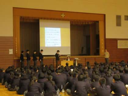 30日(木)に2・3年生合同で数学の授業を行いました。内容は東深沢中学校2・3年生の「平均勉強時間」「平均睡眠時間」「スマートフォン・パソコン・ゲームの平均使用時間」を推定しようという課題で、3年生が標本調査の手法を用いて調査を行い、発表を行いました。生徒たちは、発表を真剣に聞き、数学の楽しさや面白さを感じていたようでした。