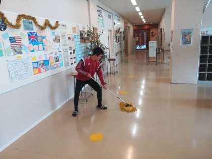 生徒が下校した後、廊下を掃除しました。明日は新2年生です。会えるのを楽しみにしています。