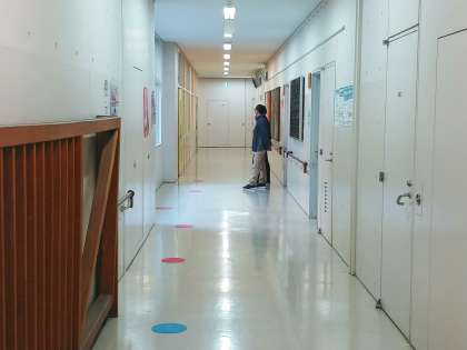 事前に先生たちが、生徒たちが集中した時に距離を開けるためにしるしを置いてくれました。