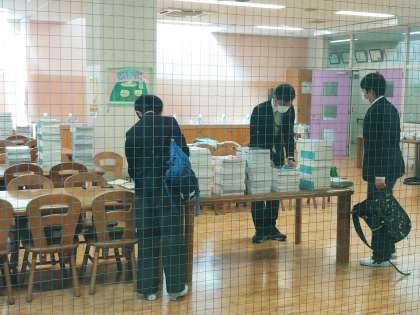 ほとんど密をつくることなく、一定の距離を保って教科書等を受け取っていました。