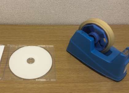 まず、始めにCDの上面の穴をセロハンテープで塞ぎましょう。