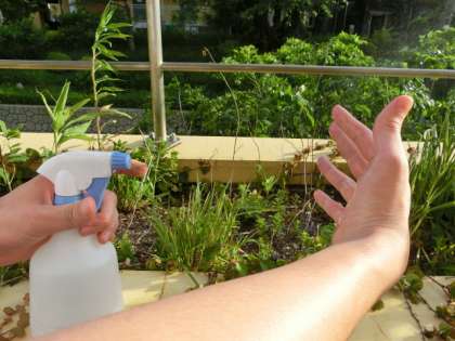 熱湯を霧吹きに入れて熱湯を出すと、手で触れることができます。