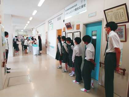 新入生入場のプラカードや新入生と保護者の方々のお迎えを頑張っています。