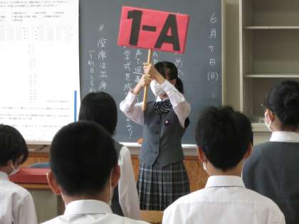 心得を確認した後に、1年生の教室で入場の説明を行いました。