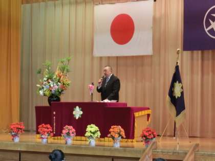 さて、保護者の皆様、お子様のご入学おめでとうございます。皆様が心から慈しみ育てられたお子様を、私ども教職員一同、心を込めて、今日から大切に教え、育ててまいります。皆様のご支援とご協力をお願いいたします。