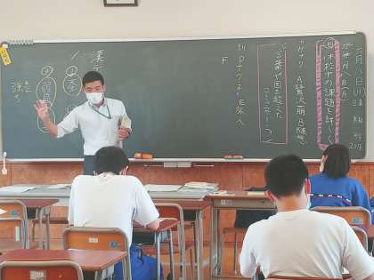 生徒への発問を中心に詳しく授業を進めていました。