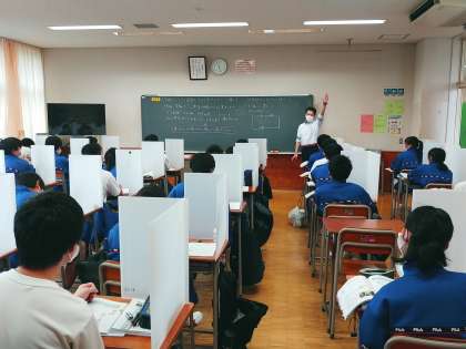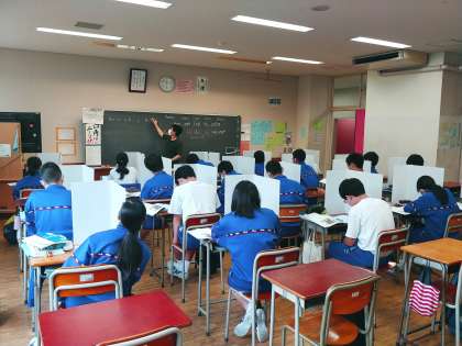 世田谷区より配布されたパーテーションを活用して授業を進めています。