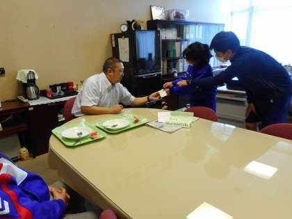 最初の授業では自分たちで作成した注文票をもって、先生方に名刺の注文を伺いに行きました。