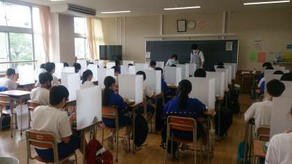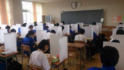 本日の給食時間は、2年生の様子です。メニューは、みんな大好きなミートソーススパゲティです。美味しかったね。みんな、もりもり食べていました。給食開始して良かったね。