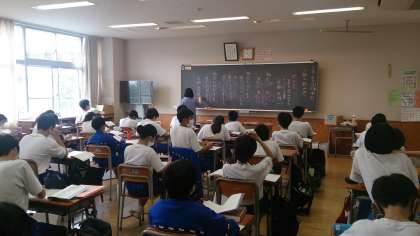 3年英語科ALTの授業、2年国語科の授業の様子です。生徒は、とても良く学習を行っています。