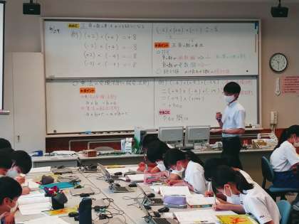 1年生の数学では、正の数、負の数の確認を行っていました。