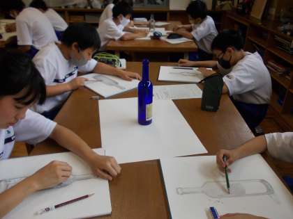 「絵が苦手だ」「上手に描けない」という生徒も、描くものをじっくりと観察し時間をかけて少しずつ描いていくことで、「もっとこう描きたい!」「影を描くにはどうすればいいんだろう?」と考えながら作品制作に取り組んでいます。