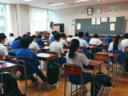 本日の全校朝礼では、副校長先生から期末考査に関するお話がありました。