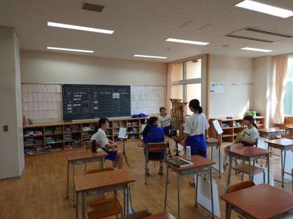 吹奏楽部の部活動の様子です。教室でパート練習を行っていました。