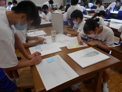 頑張って取り組んだ作品をお互いに鑑賞し、よさや美しさを伝え合いました。