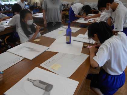 1年生は1学期「鉛筆デッサン」に取り組んでいました。