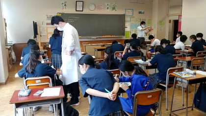 課題を進めるために、学び合ったり、先生の解説を聞いたりしています。