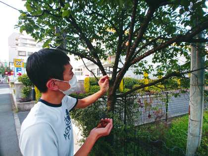 一つの木にたくさん付いていたセミの抜け殻は、