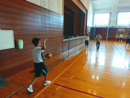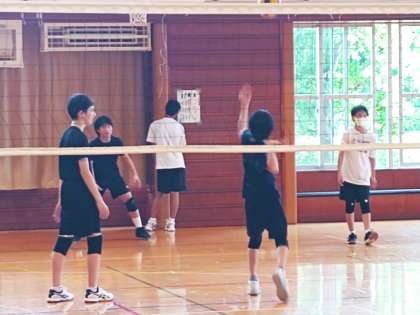 バレーボール部が基本的な練習から丁寧に頑張っています。