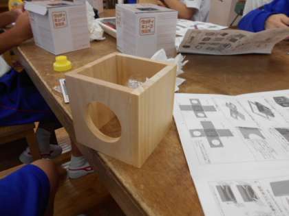 授業では、ラジオ本体のフレーム作りから行いました。皆さんフレームの組み立て方法に苦戦していたようで、周りの生徒と教え合いながら、組み立てていました。