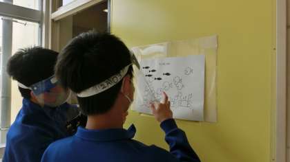 目で見た情報を、班員のみんなに分かるように言葉で伝える。伝えてもらう。