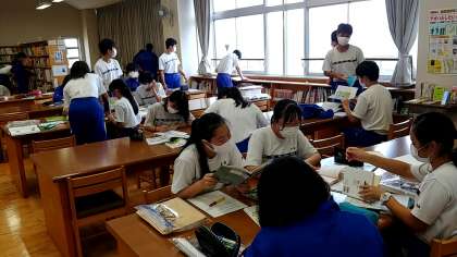 生徒たちは、図書司書さんに相談するなどして、しっかりと本を選び、調べ学習を進めていました。