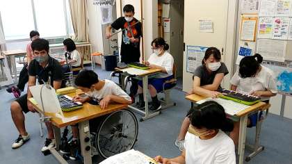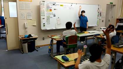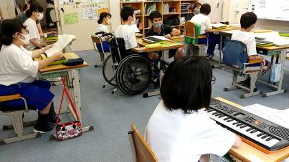 I組の音楽の授業では、キーボードを活用して、喜びの歌を弾きました。