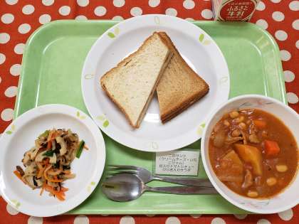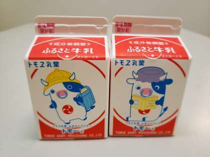 学校に牛乳を納めて下さっている、トモエ乳業さんのマスコットキャラクター『トモ〜』くんです。みなさんが楽しく給食の時間が過ごせるよう、イラストを載せることになったそうです。今、給食の時間は、各自パーティションを立てておしゃべりも控えることになっているので、かわいいイラストでほっこりできますね。イラストは4パターンありますよ。