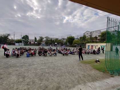 7時15分校庭に、集合しました。行ってきます!