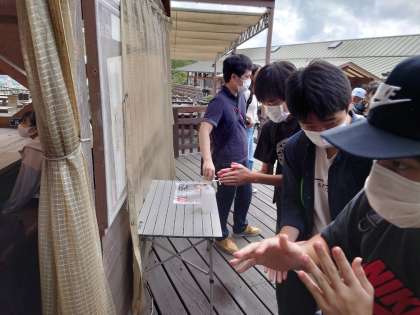 バーベキューハウスに、入る前に手をしっかり消毒します!