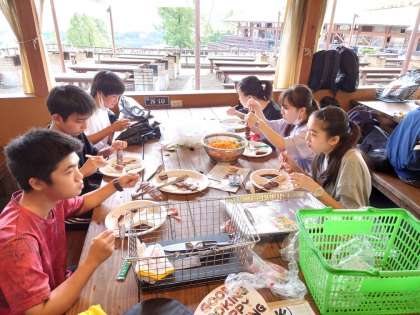 みんなで協力して、つくった焼きそばと牛肉串、トリモモ!!