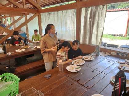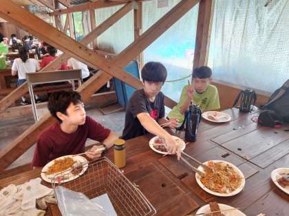 みんなで協力して、つくった焼きそばと牛肉串、ウインナー!!